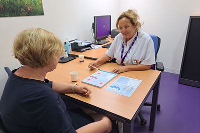 Oncologieverpleegkundige Paola Offerman uit het Albert Schweitzer ziekenhuis: “Ik merk dat veel vrouwen willen weten hoe deze therapie werkt in hun lichaam, wat je ervan merkt en of er bijwerkingen zijn. Als je weet hoe iets werkt en waarom het belangrijk is dan helpt dat om de behandeling vol te houden. De patiënt krijgt de praatplaat dus ook mee naar huis”.